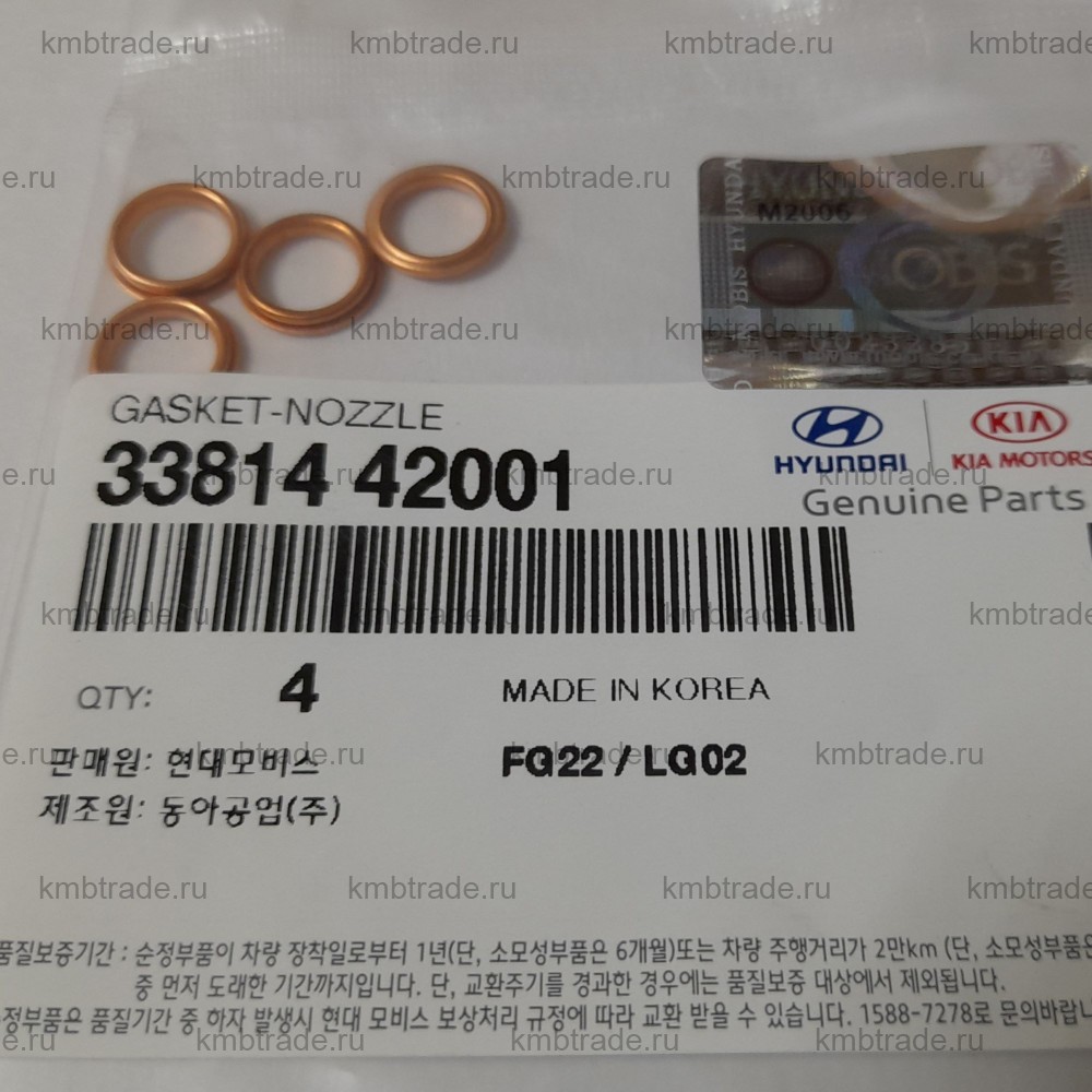 Шайба медная под форсунку 4D56/J2/D4BH (нижняя) Starex/Porter/Grace/Bongo K2700 8*11*2